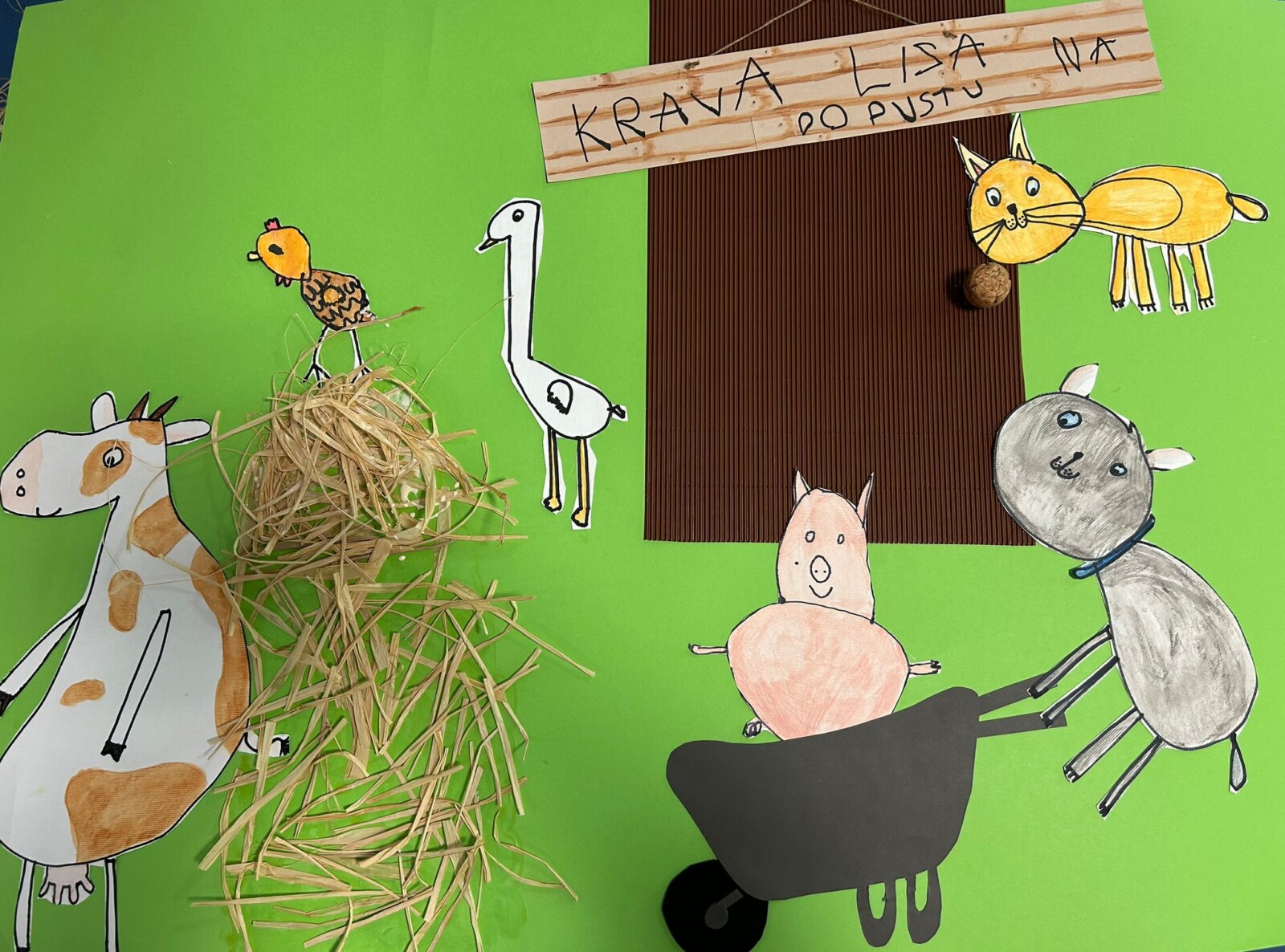Po zgodbi smo izdelali tudi plakate, kateri nam krasijo pano na hodniku. Otroci so zgodbo tudi sami obnovili.