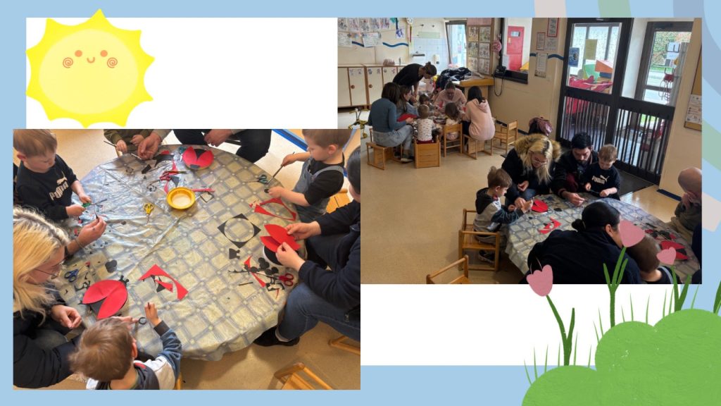 Delavnica ni bila le priložnost za ustvarjanje, ampak tudi za prijetno druženje. Otroci so s ponosom pokazali svoje spretnosti, starši pa so uživali v skupnih trenutkih z njimi. Nastale umetnine smo razstavili po enoti in tako še dodatno polepšali vrtec ter pričarali pravo pomladno vzdušje.