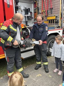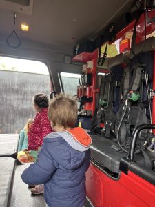 V četrtek so nas obiskali gasilci, ki so nam predstavili svoje delo, pokazali gasilsko vozilo in opremo. . Najbolj smo bili veseli, ko smo si lahko ogledali vozilo tudi od znotraj – pravi gasilski tovornjak ima ogromno gumbov, cevi in orodja!