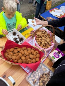Da bi dogodek dobil še bolj igriv pridih, smo ponovno uvedli posebne jesenske “cene”. Vsaka jed je imela svojo vrednost: kompot je stal ; frtalja denimo. Otroci so morali za izbrano jed pravilno “plačati” in tako smo kuharsko ustvarjalnost prepletli z matematiko in naravoslovjem.