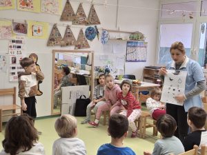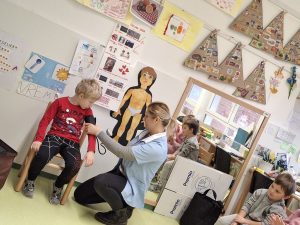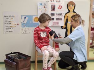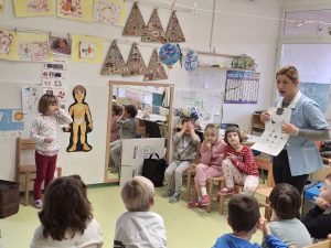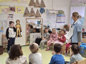 Tematski sklop po zdravju smo obogatili z delavnico Sistematski pregled, ki jo je izvedla medicinska sestra Zdravstvenega doma Nova Gorica. Prikazala nam je, kako izgleda pregled pri zdravniku, katere pripomočke uporablja zdravnik in kaj z njimi pregleda. Otroci so si in instrumente lahko ogledali, nekatere preizkusili, preverili bitje srce in poslušali dihanje. Celoten postopek pregleda je medicinska sestra otrokom približala in omogočila, da ga lahko dojamejo kot prijetno izkušnjo.