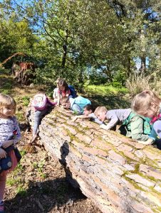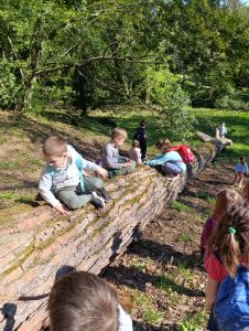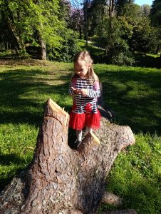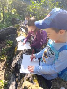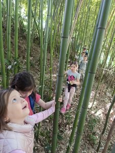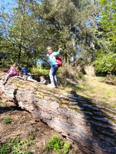 V Parku ob Laščakovi vili nam je gozdni škrat pripravil pravo dogodivščino. Po poti nam je puščal svoje kapice, ki so nas kot skrivnostni kažipot usmerjale in spodbujale, da smo opazovali lepote parka, predvsem čudovita drevesa, ki tu rastejo. Gozdni škrat nam je vlil pogum, da smo se podali skozi temen bambusov gozd, poln preprek. Na poti smo morali prečkati tudi oviro – hlod, ki so nam ga postavili zlobni škratje, da bi se ujeli na njegovo smolo. A bili smo previdni in iznajdljivi, zato smo ga uspešno premagali.
