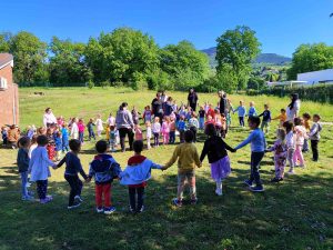 Ob koncu smo se zbrali pri vrtičku, zaplesali in zapeli ter skupaj praznovali z našo Zemljo. Dan Zemlje, ki ga vsako leto obeležujemo 22. aprila, nas opominja, kako pomembno je varovanje okolja, zmanjševanje odpadkov, varčevanje z vodo in energijo ter skrb za rastline in živali. Tudi z majhnimi koraki lahko skupaj naredimo veliko za lepši in bolj zdrav svet.