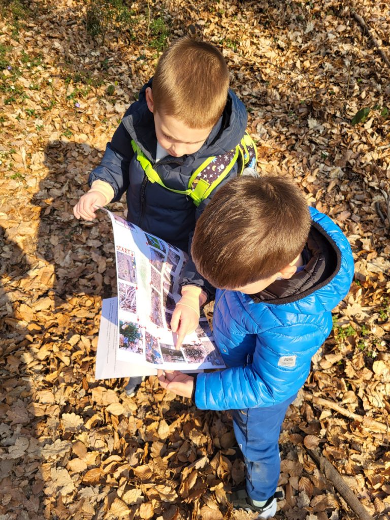 Tokrat nas je gozdni škrat povabil na posebno dogodivščino v gozd Panovec. Pripravil nam je presenečenje – skrivnostni zemljevid, s pomočjo katerega smo se podali